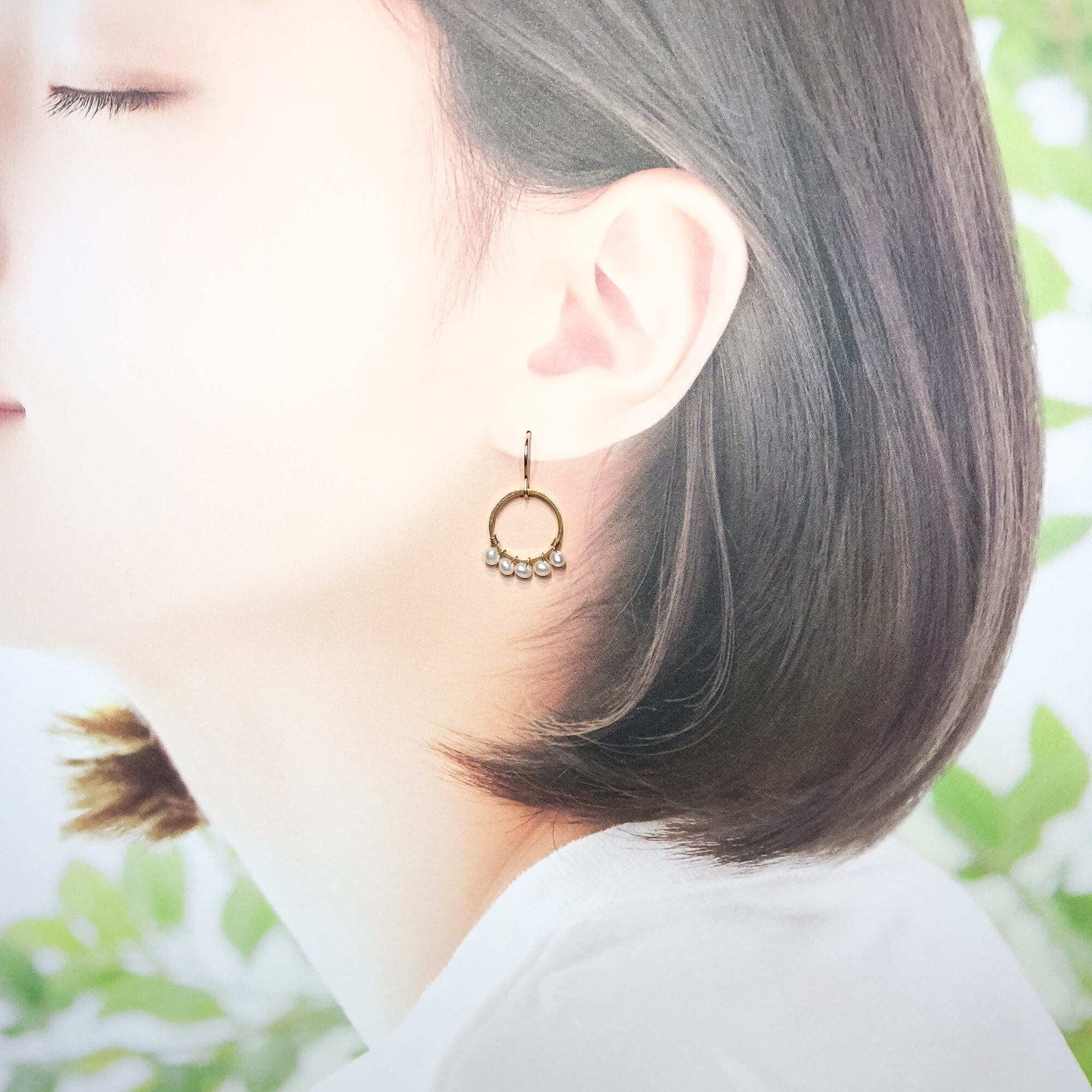 【 6月 誕生石 】 淡水パール × ミニ フープ ピアス ( イヤリング )
